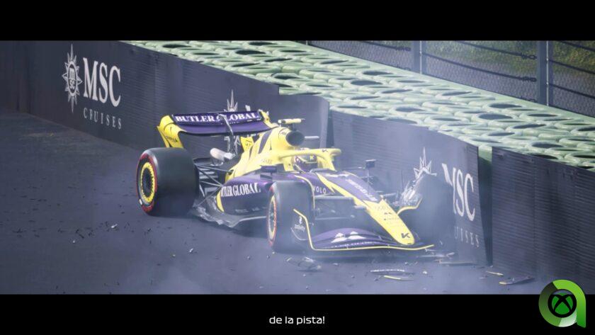 En F1 25, los daños son meramente superficiales en muchas áreas. No podemos sufrir daños en los pontones que nos obligue a retirarnos, el morro se muestra intacto ante colisiones frontales perdiendo solo el alerón delantero… A este apartado le falta todavía una gran profundidad de detalle. Podemos estamparnos a toda velocidad contra otro piloto, nosotros retirarnos por daños y el otro coche continuar la carrera con daños leves. Este apartado hace carecer de cierto realismo a la acción que se desarrolla en pista, más todavía después de ver el nivel de daños que muestran ciertas cinemáticas del Modo Braking Point.