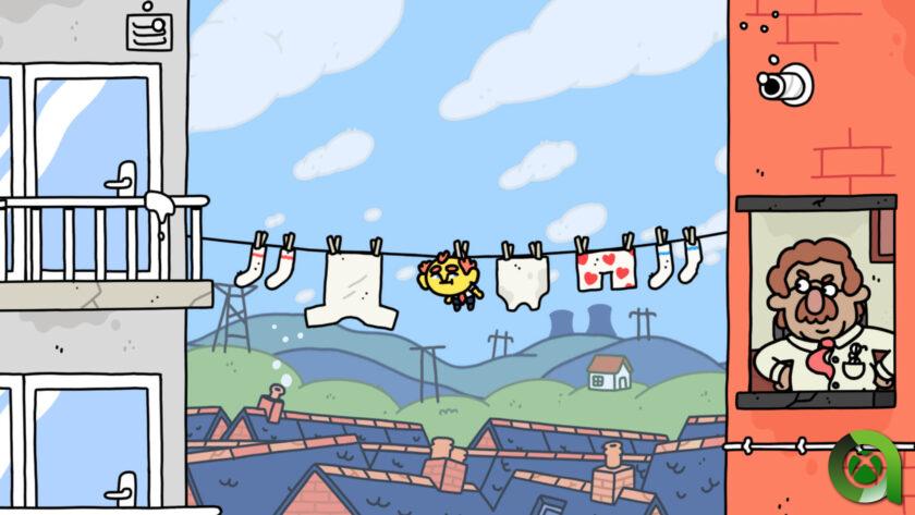 En Thank Goodness You’re Here! la jugabilidad es su punto flaco. únicamente usaremos la palanca izquierda para movernos y los botones X y A. Esto en si no debería resultar un problema por si solo, pero vemos que la interacción con el resto de personajes se basa en golpearlos con el botón X una y otra vez. Creo que tiene mas posibilidades a la hora de interactuar con objetos o personajes y que no se han tenido en cuenta. En sí, es un sistema de control realmente simple.
