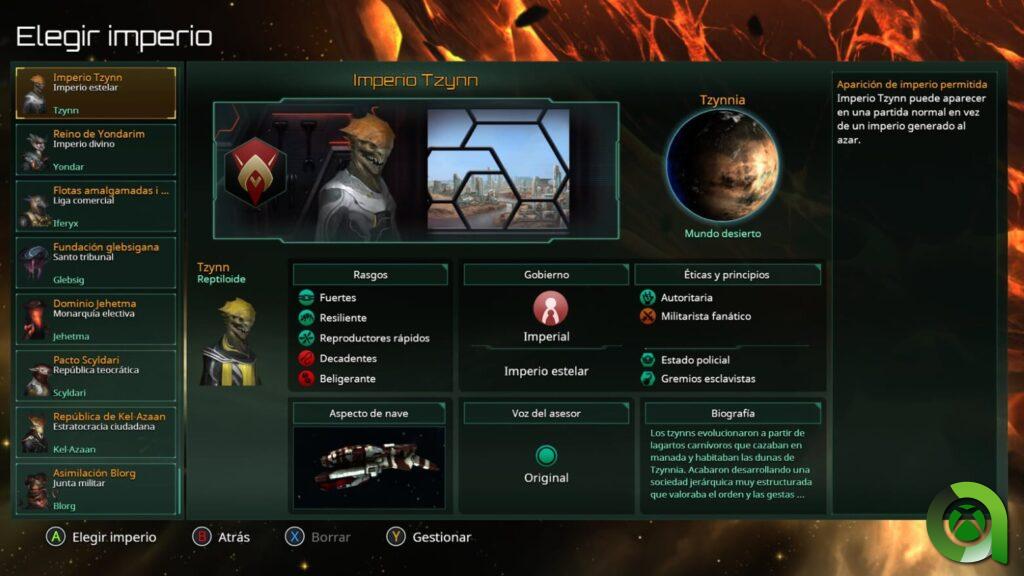 A esto, se le suma un sistema de gobierno y un apartado de éticas y principios que influirán en cómo vayamos a afrontar la partida. No obstante, si entre todas las opciones no encuentras tu estilo, no te preocupes, puedes crear tu propia raza.