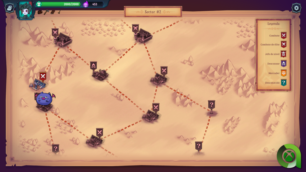 Y esta idea de seleccionar caminos, es algo que estará presente durante toda nuestra aventura. Al igual que en otros juegos con mecánicas de roguelike es muy importante ir por la ruta adecuada. Se debe mencionar, que otro punto muy atractivo de este juego es que cada uno de los sectores en los que nos moveremos cuenta con un enfrentamiento final. Es en este punto donde el juego nos pondrá las cosas verdaderamente complicadas.