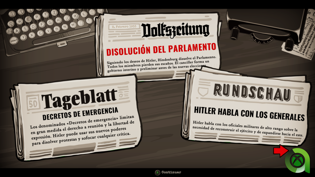 Through the Darkest of Times es un juego que se desarrolla por fases, las cuales en su conjunto duraran lo equivalente a una semana. Lo primero que veras son titulares de prensa en los que te colocarán momentos históricos importantes. Puede ser el boicot realizado por los alemanes para no comprar productos en tiendas pertenecientes a familias judías; la disolución del parlamento; entre otros.