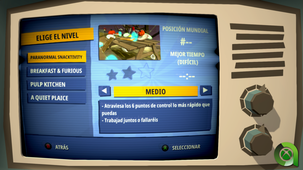 Con la música he tenido una sensación parecida a la de los gráficos. No esperaba una banda sonora memorable, ni mucho menos, aunque vuelvo a encontrarme un apartado sin personalidad ninguna. Las melodías son agradables, incluso con un ligero toque retro, pero no va más allá de acompañar las partidas para mantener un ambiente acorde a la temática. Los efectos están algo mejor, con sonidos para cada elemento de los escenarios. Platos, alimentos, cubiertos, electrodomésticos y demás, cuentan con sus propios sonidos además de físicas diferentes.