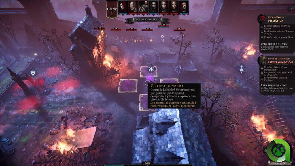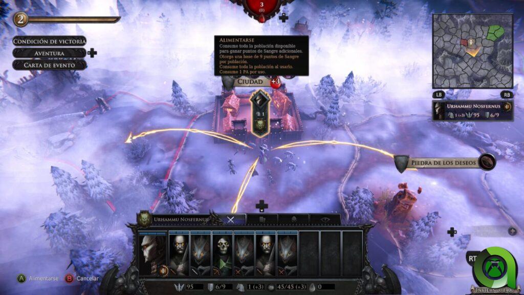 Esto también queda marcado en el mapa de campaña. El mapa por el que nos moveremos antes de entablar combate representa perfectamente esa atmósfera turbia típica de una novela de vampiros. Eso sí, en ocasiones este mapa de campaña se siente demasiado simplón.