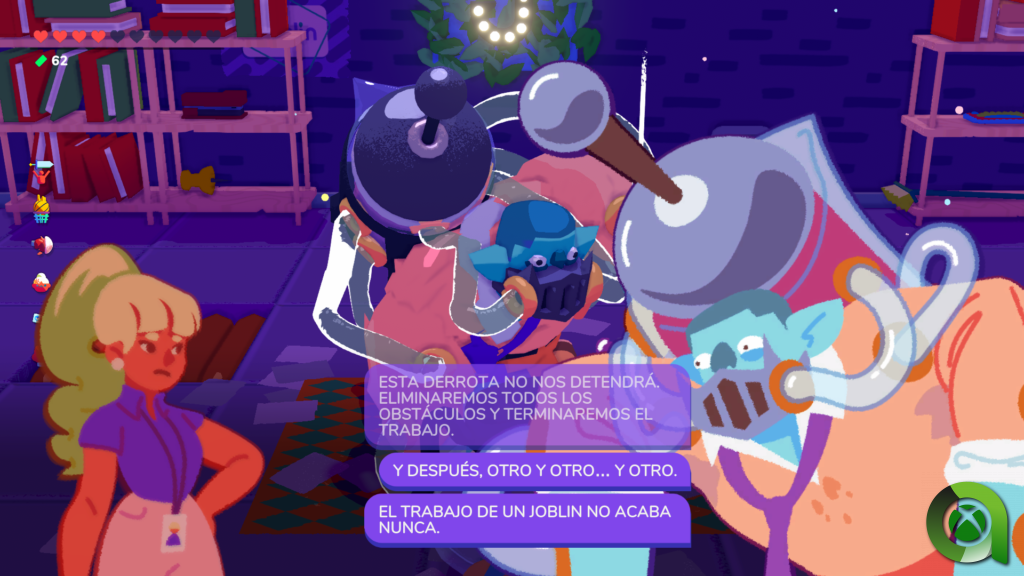 Es evidente que hay otras sagas y videojuegos del género con más calidad, más afines a las fases de mazmorras como normalmente las conocemos. Quizá por eso, este Going Under encuentre su hueco al ser una apuesta tan desenfadada y radicalmente distinta. Su jugabilidad es adictiva, siempre invita a seguir pasando cada nivel. Y el hecho de poder escoger entre numerosos objetos como arma le da un toque más estratégico. Estas mazmorras y enemigos, son casi una visita obligada para aquellos fans del género que busquen una experiencia completamente diferente.