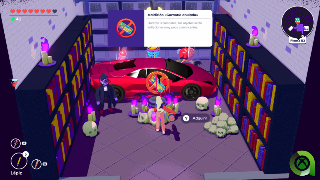 A lo largo de la aventura, tendremos que estar atentos a ciertos detalles. Las puertas que dan paso a otras habitaciones son perfectamente visibles, pero es fácil que no prestemos atención a sus símbolos en el fragor de la batalla. Algunas dan acceso a la cafetería, que hace las veces de tienda. El dinero recaudado durante la partida nos servirá para recuperar salud comprando ítems en la misma. A pesar de que a veces podemos hacer uso de algunos consumibles, es recomendable pasar por aquí, nuestra protagonista lo agradecerá, sobre todo si jugamos sin ayudas.