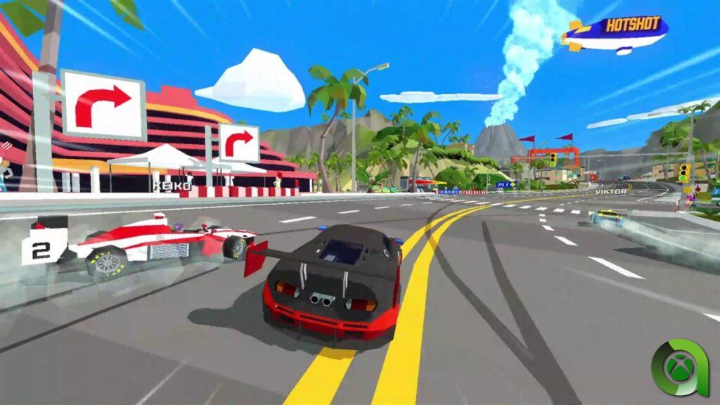 Hotshot Racing va directo al jugador sin dar rodeos. Nos encontramos ante un título de carreras arcade donde la máxima preocupación va a ser acelerar, frenar y derrapar. Puede que sus gráficos sean excesivamente simples o planos. Incluso la paleta de colores resulta muchas veces excesiva, demasiado llamativa. Sin embargo, lo más destacable del juego es que es completamente funcional y adictivo. El manejo de la conducción es realmente brillante y la sensación de velocidad es muy alta. Claro que a esto ayuda también que el juego funciona a unos rocosos 60 fps y presenta una fluidez y nitidez que lo hace lucir realmente bien.