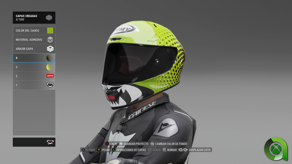 Pero la personalización va más allá de los escapes Akrapovic y todo lo relacionado con la máquina. Y es que también puede escogerse el modelo del casco y el «uniforme», editarlos con numerosos vinilos o incluso comprar otros nuevos. En lo que a modelos se refiere, no es que haya una cantidad desmedida, pero son suficientes para editar a nuestro piloto.