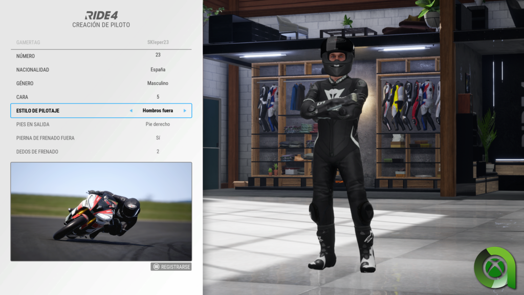 De hecho, nada mas comenzar, el juego nos insta a caracterizar al personaje con algunos puntos básicos, y otros no tanto. La creación del piloto se basa en la elección del género, el dorsal, o la nacionalidad. Lo que no esperaba, era que también pudiera escogerse el estilo de pilotaje (inclinación en curvas). Un detalle que, sumado a la «pierna de frenado» o «dedos de frenado», no hacen más que recalcar el esfuerzo de Milestone por ofrecer una experiencia única y realista a los fans.