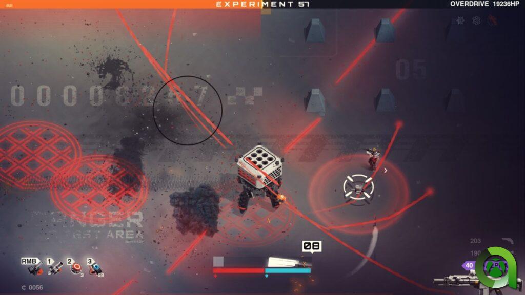 SYNTHETIC: Ultimate incluye, además, una mecánica de disparo muy curiosa y muy poco frecuente en este tipo de shooters: el disparo a la cabeza o headshot. Es muy frecuente en los juegos de disparos convencionales pero no lo hemos visto muy a menudo en este tipo de shooters con vista aérea. Además, el movimiento de nuestro personaje influye mucho en nuestra puntería, por lo que si permanecemos quietos dispararemos de forma más precisa que si nos estamos moviendo. Esto habrá que tenerlo en cuenta cuando empiecen a rodearnos los enemigos.