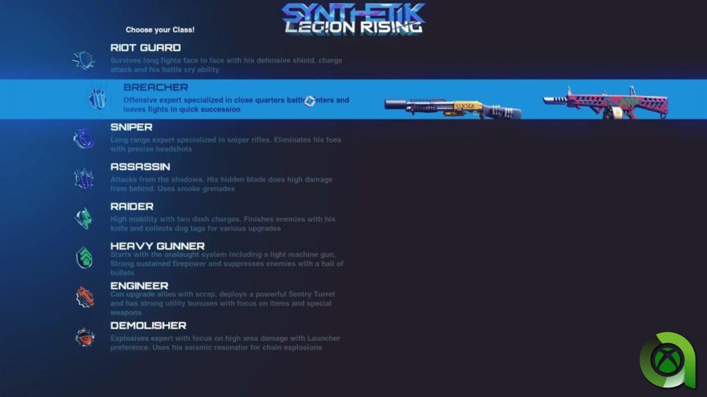 Para derrotar a las innumerables hordas de enemigos dispondremos de 8 clases diferentes de soldado para nuestro androide, que van desde el típico Tanque hasta el letal Asesino. Dependiendo del tipo de soldado que elijamos tendremos una serie de habilidades especiales (talentos de clase) que nos resultarán muy útiles para la batalla y ciertas armas específicas de inicio para cada clase.