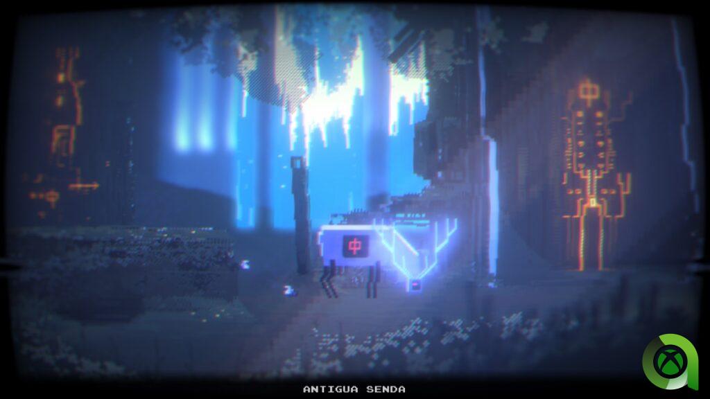 Narita Boy mezcla sabiamente una exploración plataformera, en la que resolveremos puzzles, con fases de acción pura y dura. Recorreremos los distintos parajes del Reino Digital, que nos dejarán boquiabiertos por su diseño. Siendo un juego de scroll lateral, la cámara juega con el zoom continuamente para mostrarnos toda la riqueza de los parajes que visitamos.
