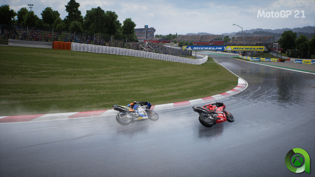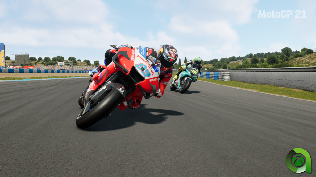 Hablando del aspecto gráfico, MotoGP 21 luce mejor que nunca. Comparándolo directamente con su hermano RIDE 4, hay que decir que pese a quedarse un pelín por debajo en cuanto a detalles y calidad gráfica, hay que contar con las futuras mejoras en Series X/S. Llegará a los 4K y 60fps. Los circuitos están perfectamente recreados, con todo lujo de detalles. Recorrer el circuito de Jerez pasando bajo el Ovni es una experiencia única, con esa primera curva de derechas al límite. Las sensaciones no pueden ser mejores, y gran parte de culpa la tienen estos circuitos tan míticos, recreados al detalle. Losail, Cataluña, Le Mans, el Red Bull Ring, no importa donde corras, el mimo a estas pistas y sus entornos es igual de sobrecogedor.