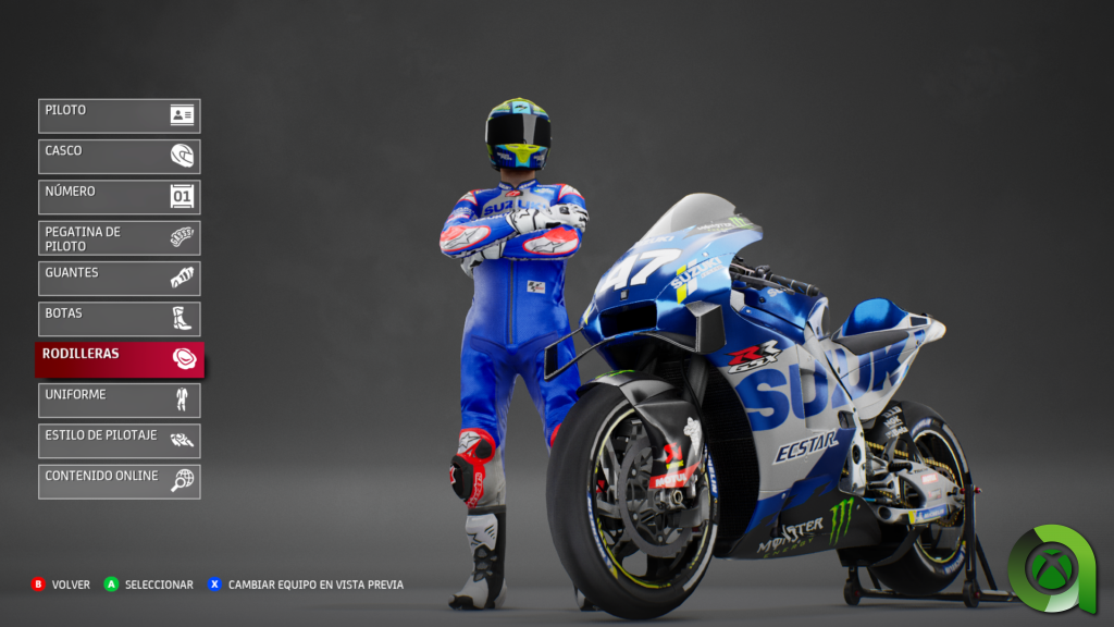 Lo más destacable empieza cuando nos metemos de lleno en la creación de nuestro piloto. De hecho, es una de las primeras tareas que nos encontraremos al iniciar el juego por primera vez. Hay multitud de elementos a elegir, como son el rostro y color de la piel, el traje y la marca de este, el apodo del piloto (que aparece en el propio traje) o los patrocinadores y colores. Pero además del aspecto, una de las características más curiosas es que el juego permite, como en RIDE, seleccionar entre diferentes posturas para tomar las curvas. Hay diferentes estilos, desde una postura equilibrada hasta sacando el cuerpo por completo de la moto.