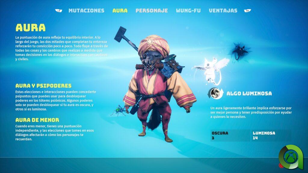 Por otro lado, Biomutant, cuenta con una cantidad de opciones que pueden abrumar en un primer momento. No sólo por los menús que son un poco caóticos al principio, sino por la cantidad de mecánicas que se han intentando incluir en el juego. Una de estas mecánicas que más me ha llamado la atención es el hecho de contar con un alineamiento, es decir, poder ser bueno o malo. Una buena idea, pero que cuenta con una ejecución muy descuidada, principalmente por el desarrollo de sus diálogos. El juego también nos ofrece una guerra de facciones, donde podremos posicionarnos con una tribu e ir conquistando otros territorios. Sin embargo, estas misiones resultan clónicas en su mayoría.