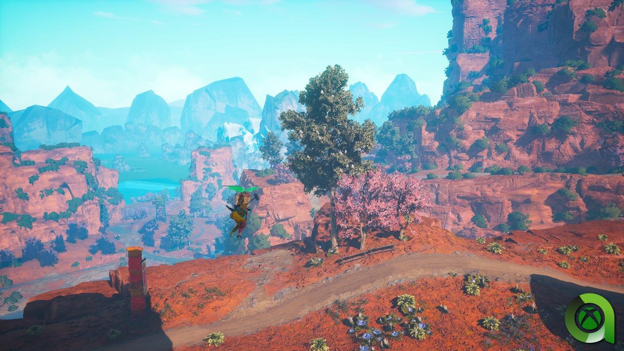 Dejando a un lado el mal sabor de boca que nos deja la estructura de la historia de Biomutant, tenemos que hablar de una de sus grandes virtudes. El diseño artístico del juego es una verdadera maravilla, y aquí sí podemos decir que lo visto en los tráilers le hace justicia al juego. Desde que salimos al mundo exterior, el juego luce de maravilla, mostrándonos unos entornos llenos de luz y color.