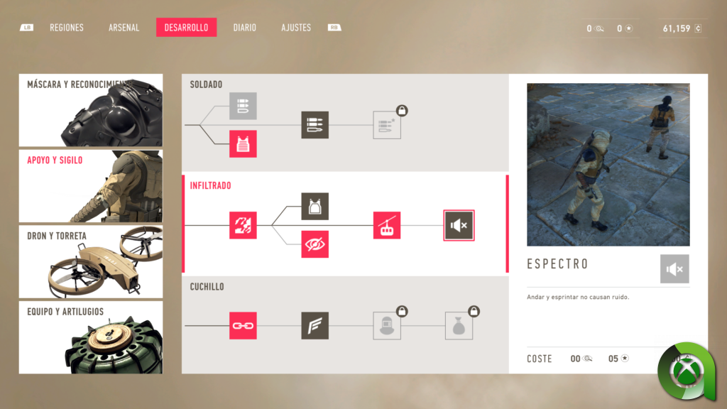 Completando los diferentes contratos, obtendremos puntos de habilidad que podremos destinar a la mejora de las capacidades de Raven. Estas mejoras se dividen en varios apartados y nos permitirá ajustar al personaje a nuestro estilo de juego.