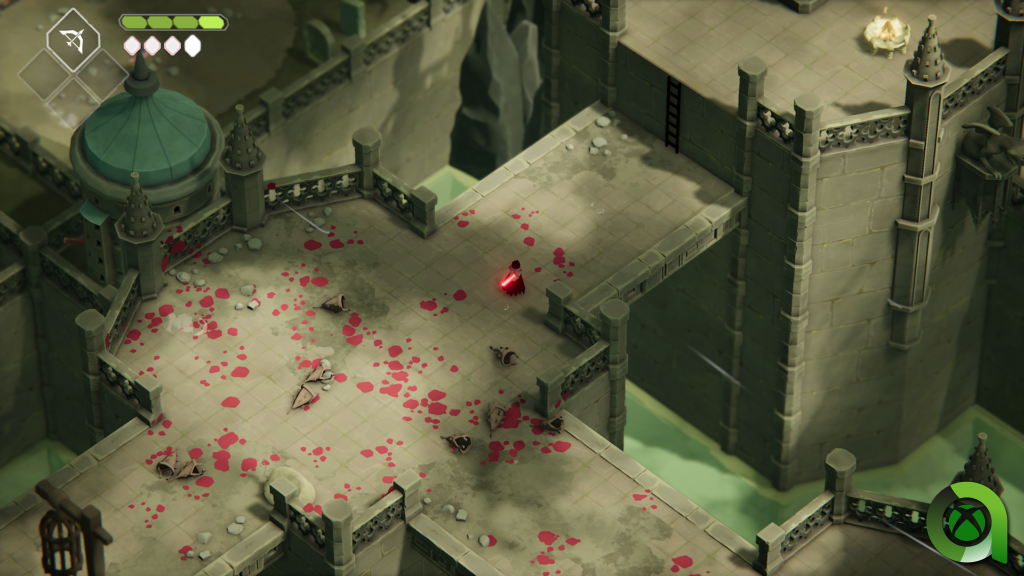 Dicho esto, quiero aprovechar para adentrarme en un tema que muchas veces es controvertido y que en este caso era una verdadera incógnita; la dificultad. Siempre que llega un juego como este, tendemos a compararlo con la saga Souls y es mirado con preocupación por algunos jugadores y con deseo por otros. En este caso, tengo que decir que Death’s Door es un juego que puede resultar desafiante en algunos puntos de la aventura, pero no considero que tenga una dificultad especialmente alta. Además, tenemos que tener en cuenta que durante la aventura tendremos la oportunidad de mejorar a nuestro cuervo. Con las almas de nuestros enemigos podremos mejorar nuestros atributos para facilitarnos los combates. Igualmente, si encontramos los santuarios que están ocultos por el mapa, podremos mejorar nuestra vitalidad y nuestra capacidad para lanzar magia.