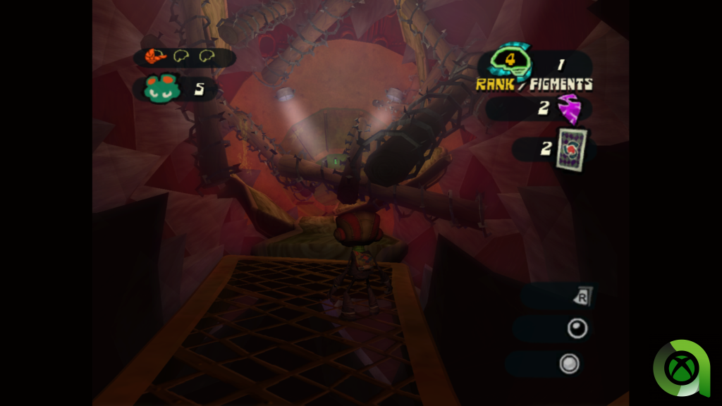 Hay que aclarar que Psychonauts también cuenta con algún que otro inconveniente. Tratándose de un juego de la Xbox original, el título no ha envejecido bien en algunos aspectos jugables, pero lo más tedioso es el tema del idioma. Hablo de que el juego, pese a estar incluido a día de hoy en Game Pass y que pueda contar con alguna mejora de rendimiento, sigue estando en un completo inglés. Tanto los diálogos como los menús tendrán que leerse y oírse en inglés, lo que para muchos puede suponer un problema.