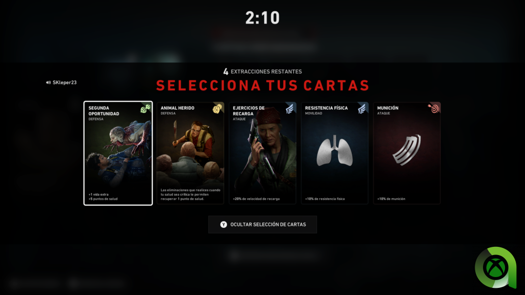 En primer lugar, tenemos que destacar que antes de iniciar cualquier tipo de partida estaremos en el Campamento. Una especie de campamento que hará de lobby, y que nos permitirá seleccionar el modo de juego y reunirnos con nuestros amigos. Además de esto, podremos probar diferentes armas e interactuar con una de las principales novedades de este título, las cartas. Esta nueva funcionalidad llega para quedarse y darle una mayor profundidad jugable que la que encontrábamos en los míticos Left 4 Dead. Aunque en un principio puede resultar un poco lioso, al cabo de un par de misiones de la campaña te harás a su funcionamiento.