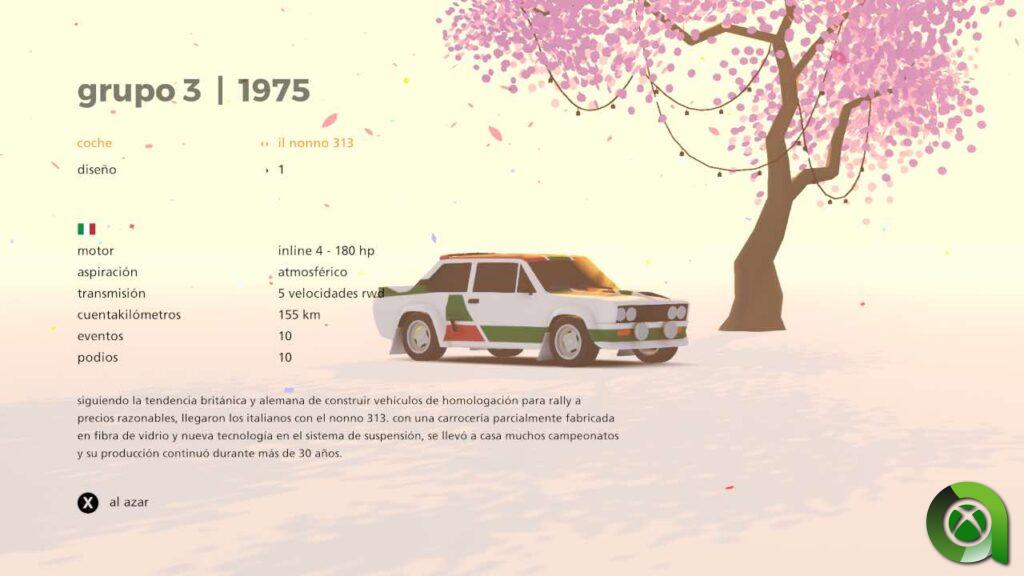 Luego pasamos al modo de juego estrella, su modo “Carrera”. En él iremos compitiendo a lo largo del tiempo y de la historia. Empezaremos con los llamados vehículos del grupo 2, en el año 1967 hasta 1971. El siguiente grupo que desbloqueamos, el 3, va desde el año 1972 a 1976. Así sucesivamente competimos a lo largo de la historia con un total de 60 etapas, llegando finalmente a la era dorada de los rallys, donde podremos conducir los famosos coches del grupo B.