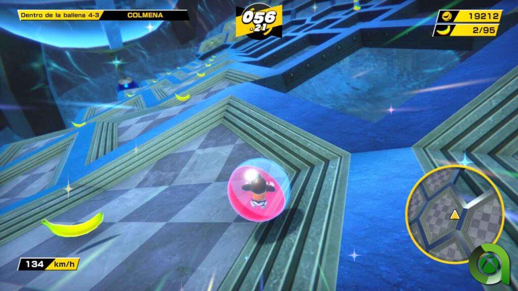 El título tiene una premisa sencilla, somos un mono dentro de una bola de hámster, y hay que controlar la bola por el escenario, y sí, es tan delirante y sencillo como suena, o quizá no tan sencillo… Con el stick izquierdo, haremos girar el escenario para dirigir la bola a lo largo de una gran variedad de niveles, a cada cual más ingenioso. Sabiendo esto, el objetivo es llegar a la meta antes de que se cumpla el tiempo límite, a la vez que recogemos todos los plátanos posibles. Su modo historia, que es su modo principal, nos ofrece diez mundos con diez fases cada uno. La curva de dificultad está ajustadísima y los niveles irán siendo más complicados y enrevesados según vayamos avanzando. Hará falta habilidad, pero también paciencia y autocontrol, más importantes aún.