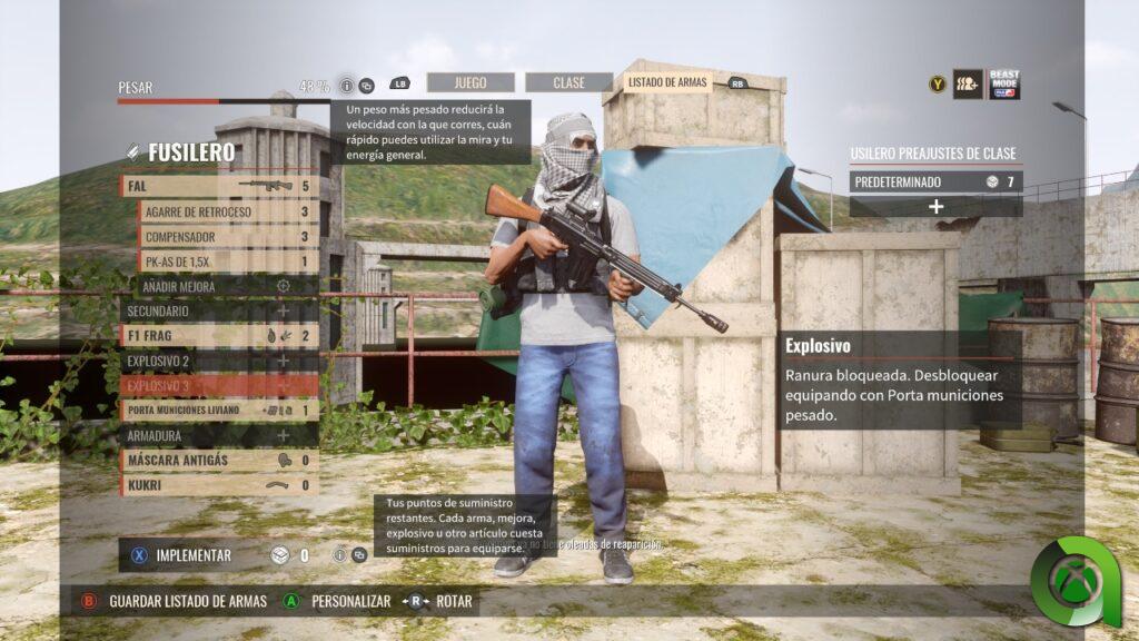 Eso sí, tendremos a nuestra disposición un gran número de accesorios y una más que decente recopilación de armas. Podremos seleccionar lo que queramos, eso sí, siempre teniendo en cuesta que tanto estas mejoras como las armas cuestan puntos de suministros, los cuales son los mismos para todos los jugadores y en todas las partidas. Atendiendo a ellos tendremos que optimizar nuestro equipo para obtener el mejor resultado en combate.