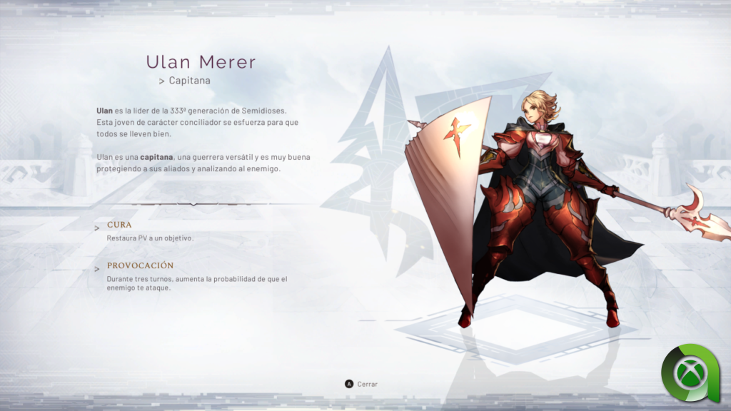 Ulan Merer. Líder de la 333ª generación de Semidioses. Tiene un carácter conciliador, con el cual se esforzará para que sus compañeros se lleven bien. Es una capitana, guerrera versátil y muy buena protegiendo a sus aliados y analizando al enemigo.
