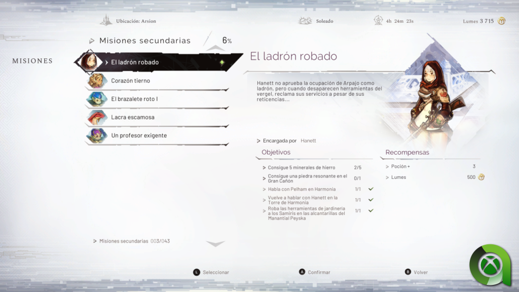 Siguiendo el argumento de la historia principal nos irán apareciendo los distintos objetivos para ir avanzando en la trama. A parte de estas misiones, si hablamos con os distintos ciudadanos de los reinos, nos irán comentando algunos problemas que están teniendo con alguna «discordancia». Estas misiones secundarias nos servirán para ganar algunos objetos especiales, ganar dinero y también experiencia. No tienen ningún tipo de aliciente en cuanto al argumento estas misiones, ya que son simples recados que una vez cumplamos recibiremos nuestra recompensa.