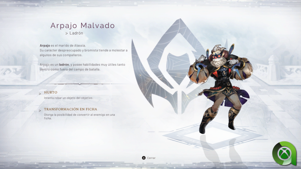 Arpajo Malvado. Ladrón con habilidades muy útiles para tanto dentro como fuera de combate. De carácter despreocupado y bromista que le gusta molestar a alguno de sus compañeros. Es el marido de Alassia.