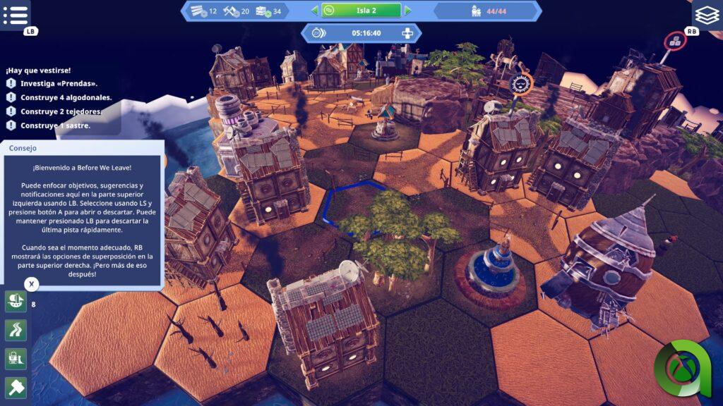 Que Before We Leave sea un juego pacífico o ausente de belicosidad, no implica que se trate de un juego al alcance de todos o que sea sencillo de afrontar. No deja de ser un juego de construcción y gestión de recursos, que aunque relajado, te va a plantear retos como la limitación de espacio.