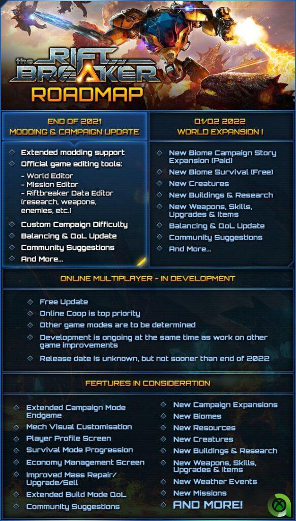 The Riftbreaker es un juego de acción RPG y estrategia ambientado en un futuro de ciencia ficción. El título desarrollado por EXOR Studios se encuentra disponible desde el pasado 14 de octubre. Este título ha tenido una buena acogida por parte de los jugadores y de la crítica. Es por ello que desde el estudio de desarrollo EXOR Studios, han querido compartir sus planes en cuanto a actualizaciones, haciendo pública su hoja de ruta marcada.