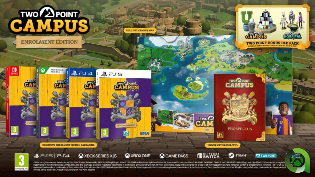 SEGA Europe Limited y Two Point Studios Limited se complacen en confirmar que el esperado juego Two Point Campus, llegará a PC y consolas el 17 de mayo de 2022. Los jugadores pueden visitar TwoPointCampus.com para precomprar una copia física del juego, o precomprar digitalmente Two Point Campus para Steam, PlayStation 4 y 5, Xbox One y Xbox Series X|S a través de las tiendas first party. La precompra en Nintendo Switch estará disponible muy pronto a través de la eShop. Two Point Campus también estará disponible en Xbox Game Pass para consola y PC Game Pass desde el primer día.