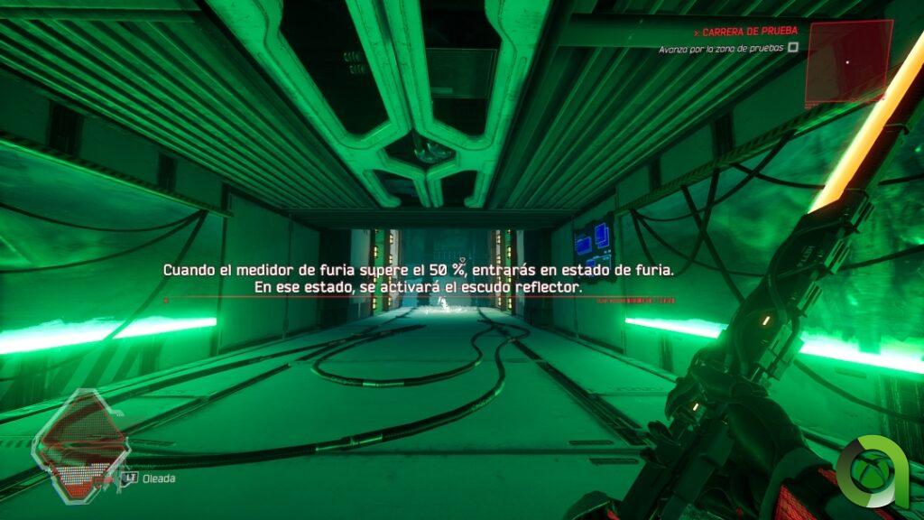 Como sabéis, en Ghostrunner podemos morir de un solo impacto, por lo que debemos ser implacables en todo momento. Pero para combatir a estos enemigos y superar los nuevos e ingeniosos niveles, contaremos con una pequeña ayuda extra desde el inicio. A diferencia de Ghostrunner, en Project Hel empezamos con el medidor de furia. Este se ubica en la esquina inferior izquierda, y cuando supere el 50%, tendremos activo un escudo reflector que evitará que nos maten en un primer impacto.