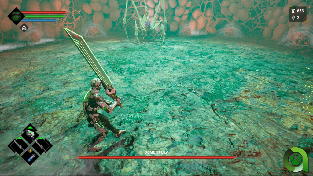 Ya en este punto, creo que es necesario hablar de la dificultad que acompaña a Dolmen. En este sentido, el juego cumple con los estándares habituales en este tipo de juegos, es un título en el que cualquier enemigo podrá acabar contigo con unos pocos golpes si no estás atento. Si es cierto que mecánicamente no he encontrado criaturas especialmente desafiantes, pero el juego intenta suplirlo poniendo un buen puñado de enemigos en cada estancia. Por otro lado, sus combates contra jefes, la gran corona a la que aspiran todos los juegos de este género, ¿Cómo se sienten?