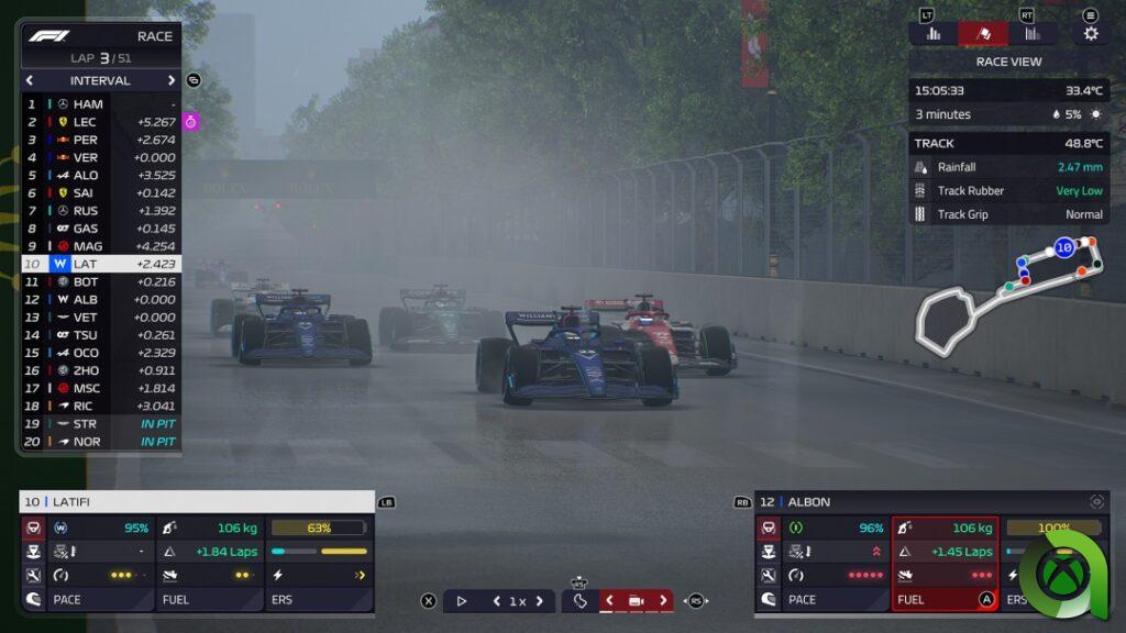 Desde que se apagan las luces hasta la bandera a cuadros, los jugadores pueden elegir cómo controlar cada decisión en la pista, desde la estrategia en boxes hasta las instrucciones de los pilotos en carrera. Los jugadores pueden dar auténticas indicaciones por radio a sus pilotos y utilizar los datos en tiempo real para reaccionar a los acontecimientos dinámicos de la carrera, como los cambios de tiempo, los coches de seguridad y las banderas rojas, y tomar esas decisiones cruciales que pueden llevarles a la cima o dejarles en la cola del pelotón.