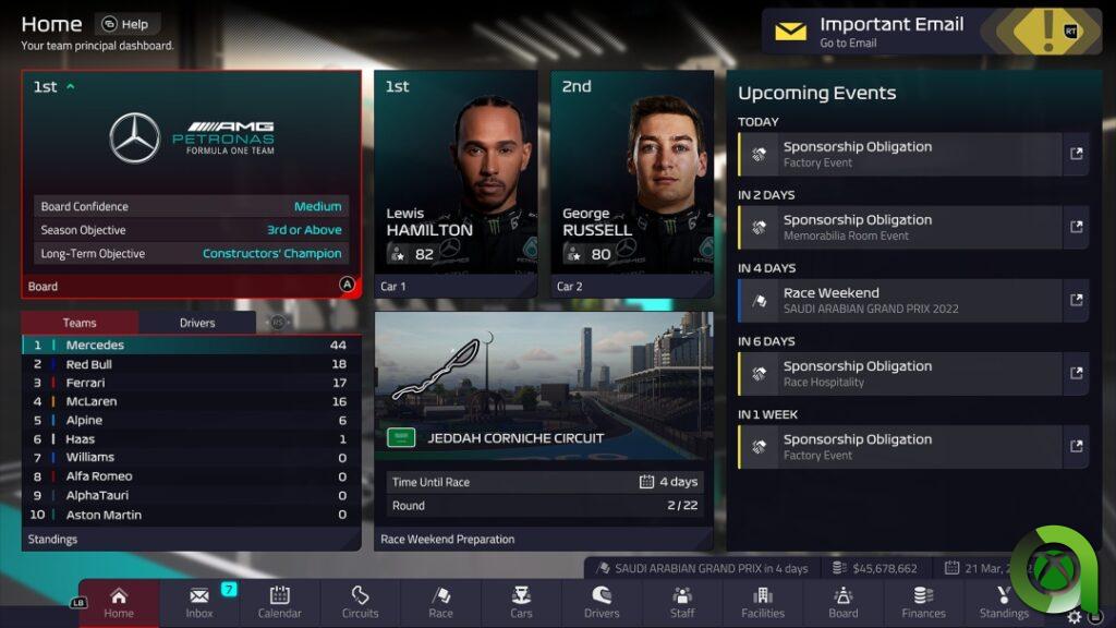 La sede del equipo es el corazón de cualquier fabricante, y en F1 Manager 2022 no es diferente. Los aspirantes a directores de equipo controlarán todos los aspectos de su escudería desde su vanguardista cuartel general. Desde la búsqueda e inversión en el mejor personal, como los ingenieros de carrera y el jefe de aerodinámica, hasta el desarrollo y la evaluación de los nuevos componentes del coche. Los jugadores tendrán que mantenerse al día de todo para asegurarse de que están un paso por delante en la competición, tanto ahora como en futuras temporadas.