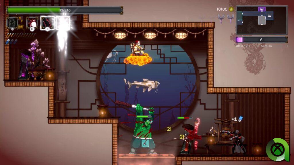 Con estas opciones disponibles, la movilidad del personaje es muy fluida a la par que rápida. Ciertamente todo lo referente al movimiento y al ritmo del juego podría resumirse en «rápido». Continuamente nos estamos moviendo, golpeando y saltando, haciendo que cada partida sea intensa y, dependiendo de nuestra habilidad, más o menos larga.
