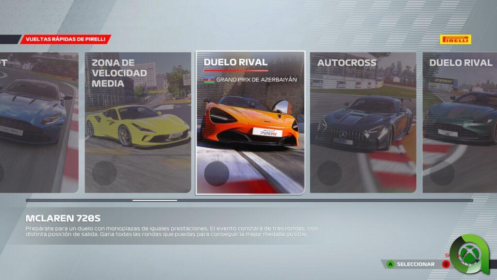 Para llevar a cabo estas pruebas, contaremos con un vehículo ya predeterminado. Es decir, cada prueba tiene un coche asignado; al haber varias pruebas de cada tipo, en una correremos con el Mclaren Artura, en otra con el Ferrari F8 Tributo o el Aston Martin Vantage. ¿Es divertido? sí, como contenido extra está bien. Aún así, sigo pensando que no tiene demasiado sentido incluirlo en el juego oficial de la Fórmula 1.