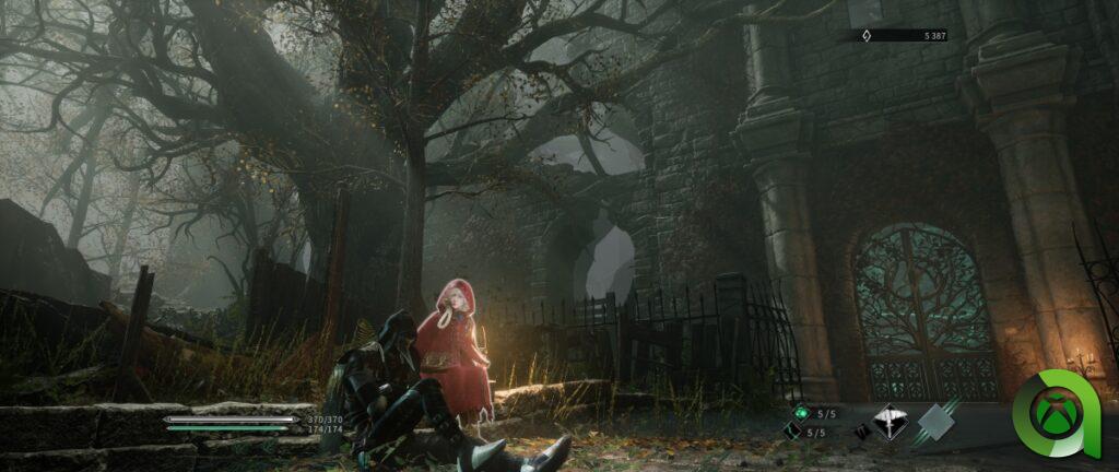Thymesia se divide en unas zonas bien diferenciadas, una de ellas es básicamente el sueño del cazador de Bloodborne. Aquí recibe el nombre de la colina del filósofo, donde no encontraremos enemigos sino a una niña pequeña que parece guiarnos en nuestra aventura. También podemos subir de nivel en la zona además de escoger a qué zona dirigirnos.