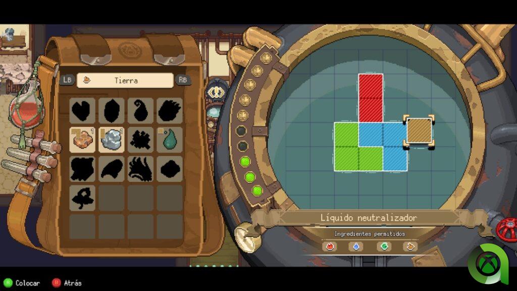 Los recursos, que van desde madera, savia o roca hasta miel, garras de oso o diversos tipos de flores, se dividen en cuatro categorías. Según la poción que vayamos a crear, esta tendrá unos requisitos, que limitarán el uso de dichos recursos, así como la cantidad que podamos emplear en el caldero. Todo esto se debe a que el sistema de alquimia plantea estos recursos como diferentes formas similares a las piezas del Tetris, obligando al jugador a elegir sabiamente a la hora de ocupar todos los huecos. Sin duda una apuesta original.