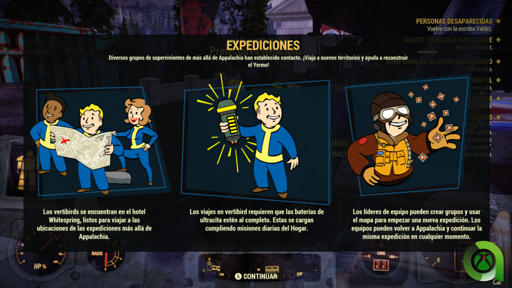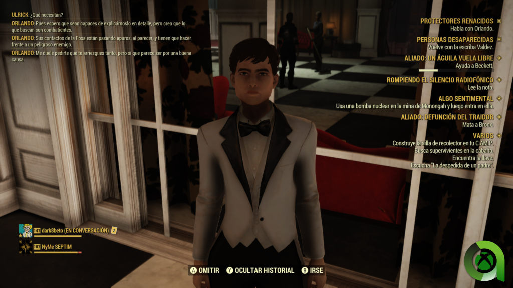 Para comenzar con esta nueva línea de misiones, deberemos dirigirnos al hotel de Whitesprings ya que ahora está siendo repoblado por un grupo de personas que intenta arreglar (aún más) el desastre de situación que hay en Appalachia. Una vez allí, más concretamente en El Hogar, encontraremos a la persona que nos abrirá la nueva línea de misiones, Orlando.