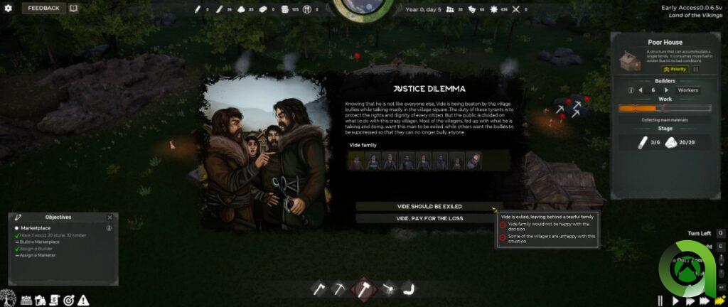 De vez en cuando pueden saltar eventos aleatorios, van desde gente que quiere unirse a la aldea hasta a enfrentamientos entre familias. Cuando esto pase, deberemos elegir entre varias opciones que tendrán una u otra consecuencia, normalmente repercutiendo en la felicidad de los aldeanos.