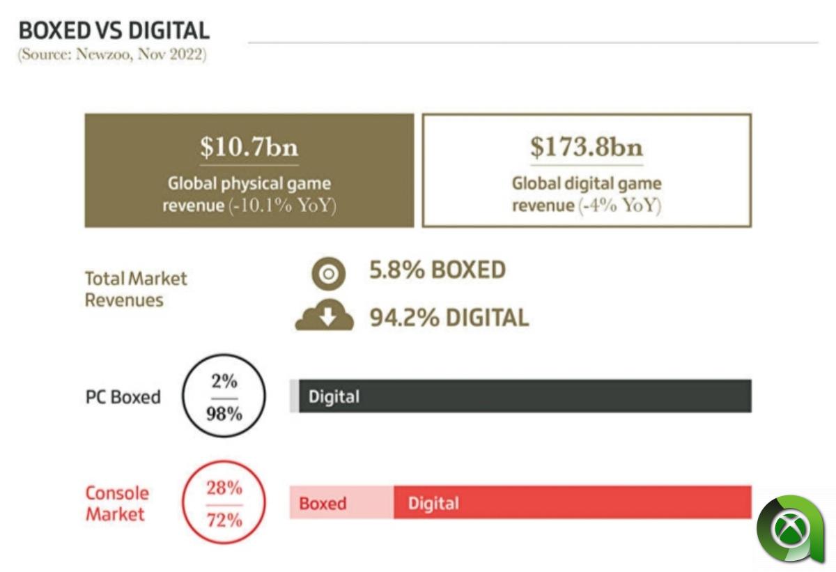 Si juntamos todas las plataformas, nos quedamos con un 94,2% para los juegos digitales y el 5,8% restante para los físicos. Esto contando con que Nintendo, entre otras, no facilita sus datos de ventas del formato digital.