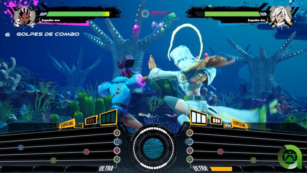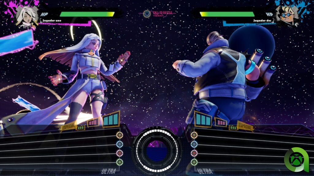 El juego nos presenta combates de 1 vs 1, tanto online como en local. En la demos podemos elegir entre 7 personajes diferentes. También tenemos la posibilidad de escoger el escenario donde queremos pelear y la música que nos acompañará. Incluso podemos personalizar los ritmos en un editor para crear variaciones en los combates.