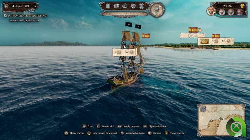 Podremos explorar con libertad los mares del Caribe, descubriendo ciudades y asentamientos costeros que utilizaremos para descansar, reparar nuestras naves, mercadear, contratar tripulantes…También encontraremos capitanes que se unirán a nuestra flota y nos darán acceso a nuevas misiones. En cuanto a la exploración no hay mucho más que contar, ya que aunque tenemos libertad absoluta de movimiento, no hay mucha profundidad en este aspecto más allá de lo dicho. Desde Gaming Minds Studios han querido dar facilidad a nuevos jugadores para hacer un título algo más accesible y menos exigente que sus anteriores trabajos en la saga Port Royale.