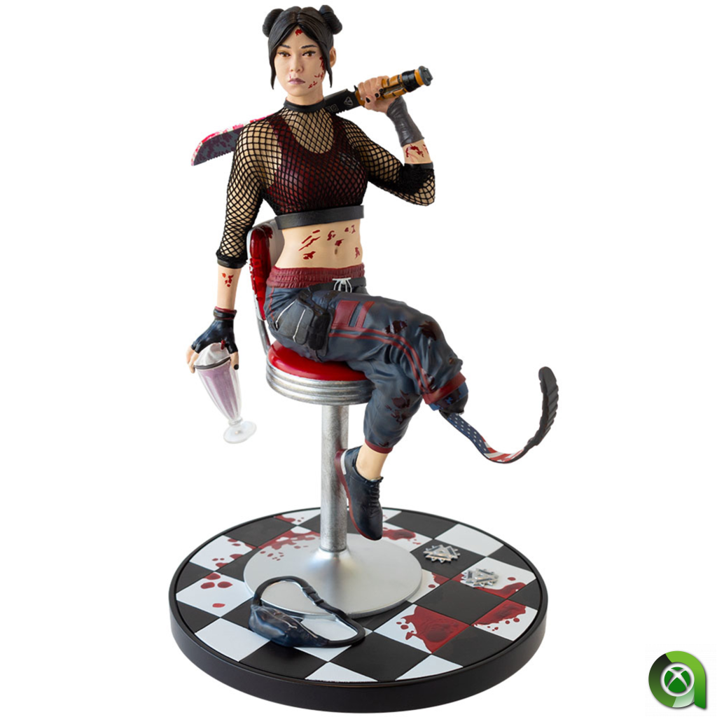Una impresionante figura que ilustra a Amy, la matazombis, hecha en resina y pintada a mano, que se encuentra relajándose en el restaurante Burger 66 con un batido tras repartir leña a los zombis.