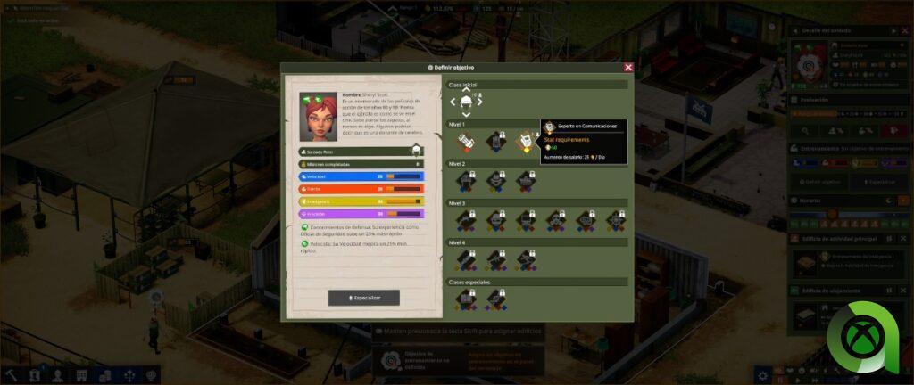 Una vez reclutados, podemos entrenar las diferentes habilidades y luego especializarlos en ramas, por ejemplo en espías, artilleros, conductores de tanques, aviadores, etc. Los investigadores nos permiten investigar diferentes mejoras, tecnologías y nuevas edificaciones.