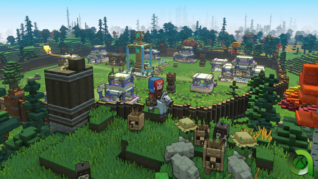 Al poco de adentrarnos en este nuevo mundo nos daremos cuenta de todos los cambios que propone este spinoff. El principal es su apartado jugable, el cual realiza una mezcla de varios géneros. Como ya adelantamos, el principal es la estrategia en tiempo real. En Minecraft Legends, tendremos que construir, liderar tropas y combatir a esta gran amenaza. Todo ello desde una perspectiva en tercera persona que nos permitirá movernos por el bonito mundo de este título a lomos de nuestra montura. Esto hace que la aproximación a este género sea mucho más activa y dinámica que en otros títulos. Aquí no tendrás que limitarte a la toma de decisiones, sino que formarás parte del combate.