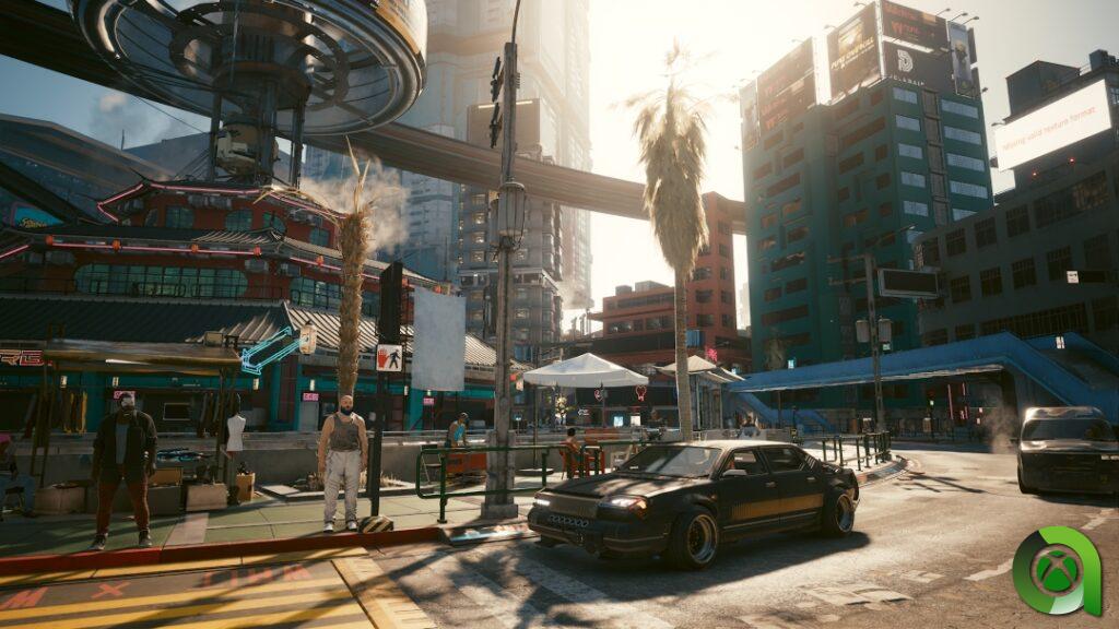 A partir de este punto, uno empieza a darse de cuenta de la envergadura del videojuego, de la colosal obra que ha construido CD Projekt RED. Aún teniendo sus defectos, el juego logra cautivarte a través de una Night City espectacular, que se convierte merecidamente en una figura protagonista desde el principio. Siendo un mundo tan hostil y decadente, resulta hipnótico recorrer cada uno de los distritos. Los «megaedificios» se entremezclan en un Skyline sobrecargado, que llega a tragarse por completo la luz del sol.