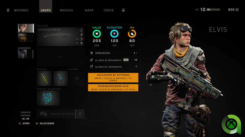 Los núcleos nos conceden ventajas pasivas como más armadura, más movimientos de casillas o más salud, por ejemplo. En cambio los chips se integran con el poder de miasma equipado, y mejoran las capacidades de dichos poderes aunque provocan mayor coste de energía al usarlos. Tened cuidado.